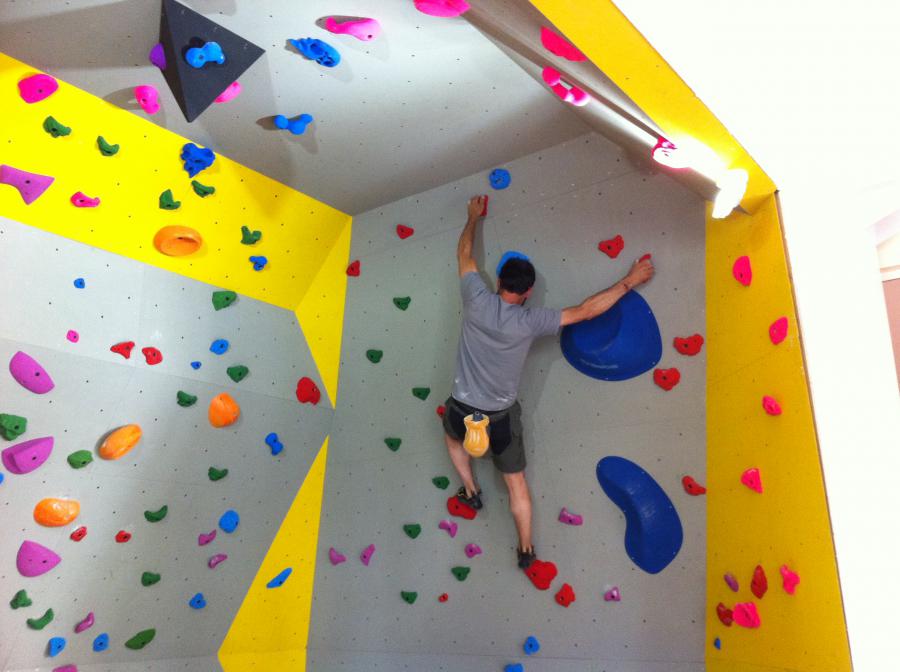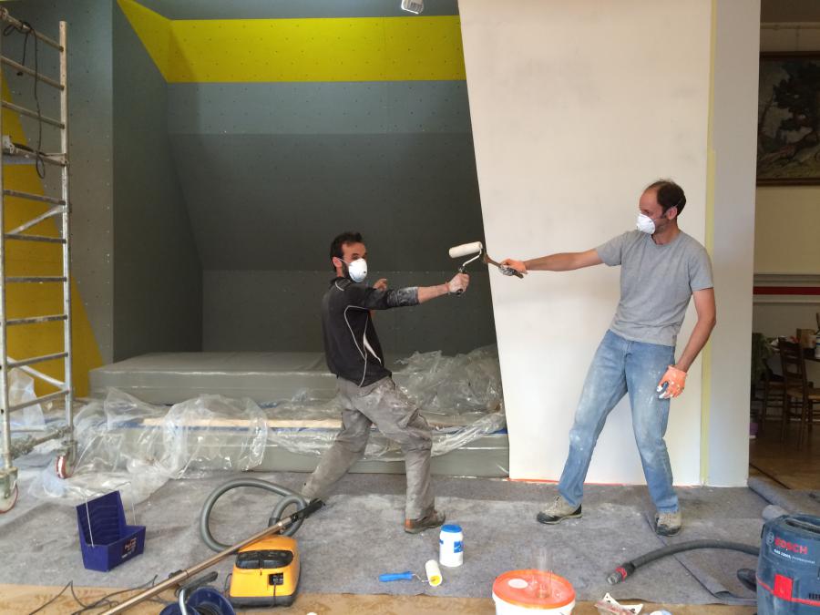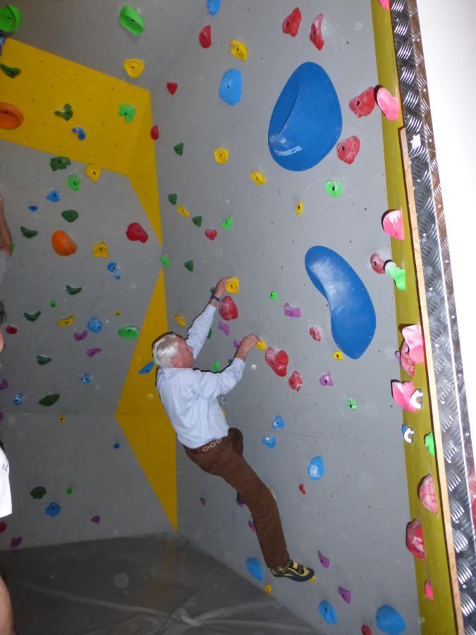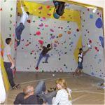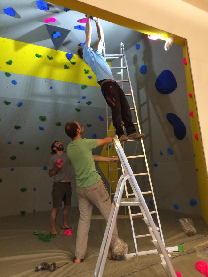 Un bloc de grimpe, voeu exprimé par les jeunes (de tous âges!) comme priorité pour marquer le 150e, a pu être créé dans un espace libéré suite aux transformations du local.